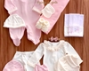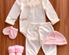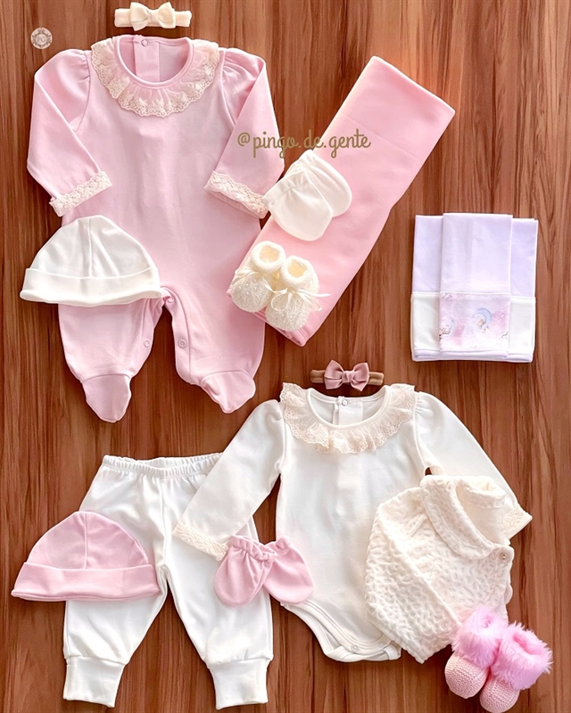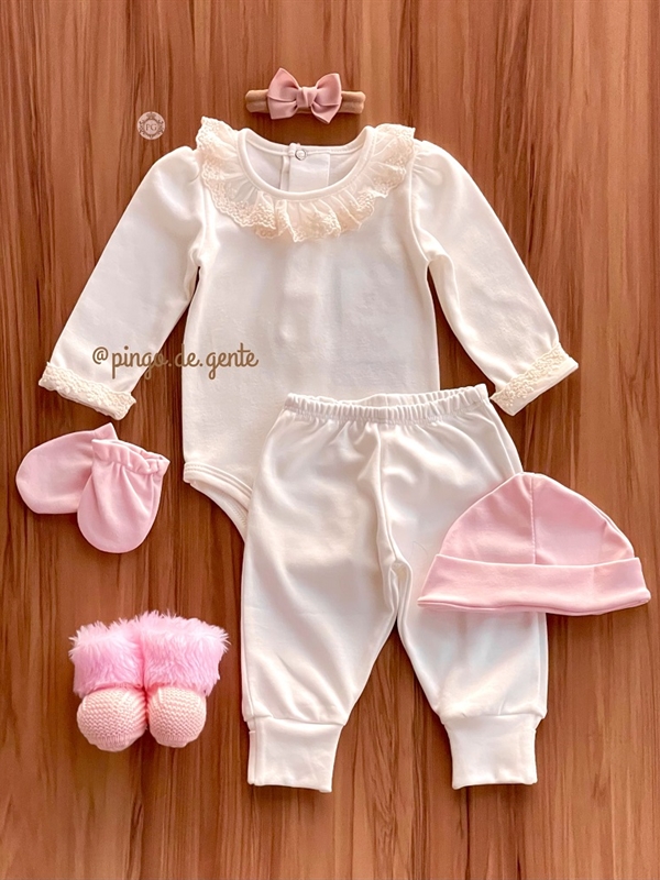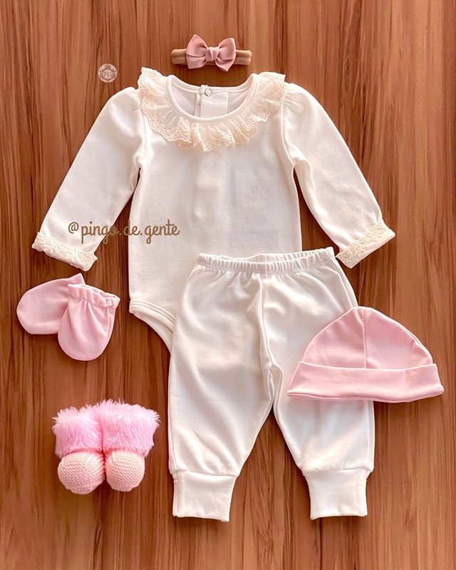 *O conjunto é composto pelo body e calça, e, não acompanha kit de touca e luva, sapatinho, casaquinho, e faixinhas da foto.