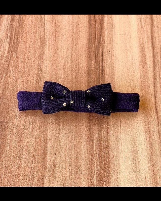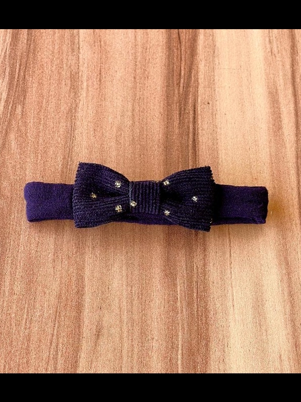 Faixa Meia Bebê Mini Laço Cotelê Preta