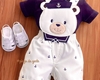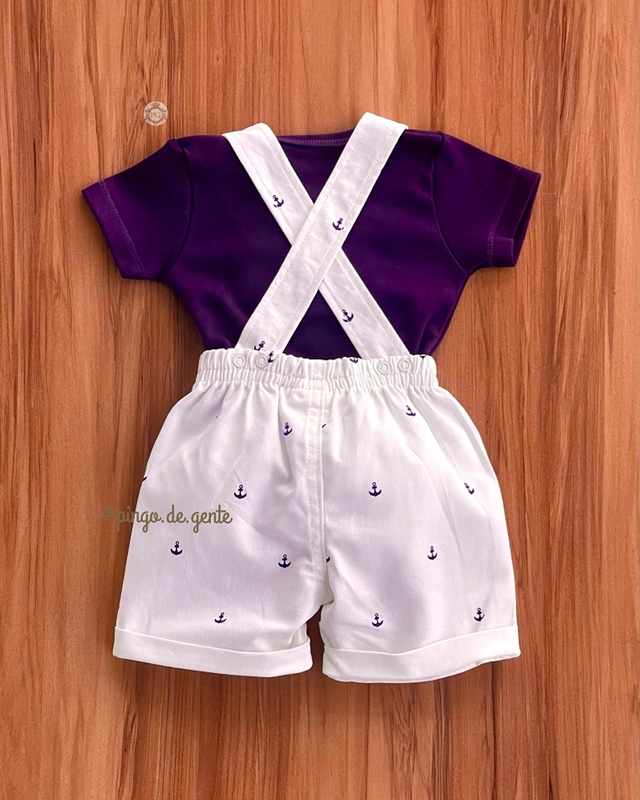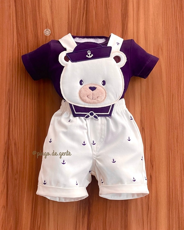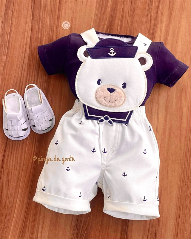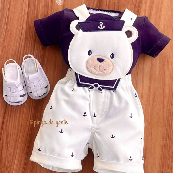 Jardineira Âncoras Bordado Fofinho com Body Ursinho Giuseppe P