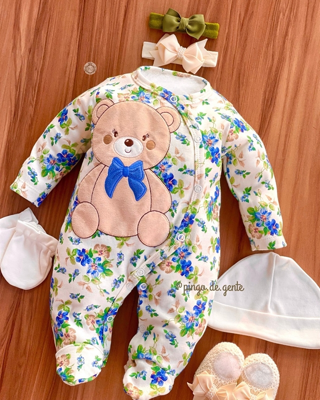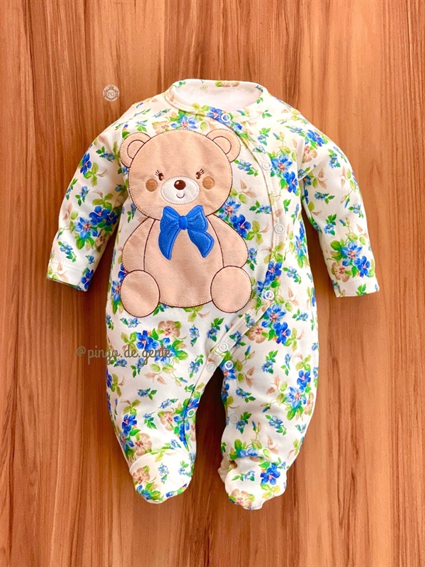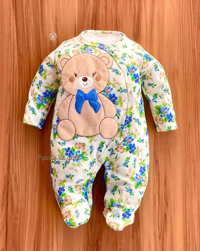 Todo em algodão, leve e macio perfeito para o verão, nessa estampa floral, com abertura quimono, e a Ursinha Flora bordada em relevo na peça.