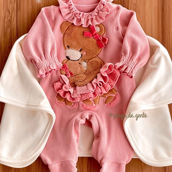 Macacão Plush Bordado Fofinho Ursinha Marie Com Manta M